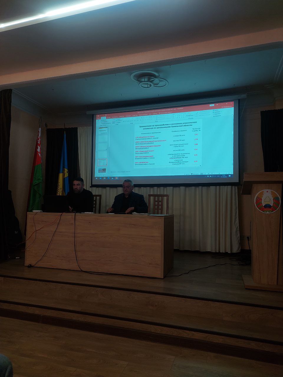 У сваім выступленні прадстаўнік Дэпартамента інфармаваў прысутных аб прычынах вытворчага траўматызму за студзень-верасень 2025 года, які адбыўся ў арганізацыях Гомельскай вобласці. Прывёў прыклады шэрагу няшчасных выпадкаў на вытворчасці, у тым ліку прыклады выпадкаў, калі пацярпелыя знаходзіліся на працоўным месцы і ў працоўны час у стане алкагольнага ап'янення. Таксама Вячаслаў Сафонаў з дапамогай відэароліка наглядна прадэманстраваў наступствы няшчасных выпадкаў на вытворчасці.