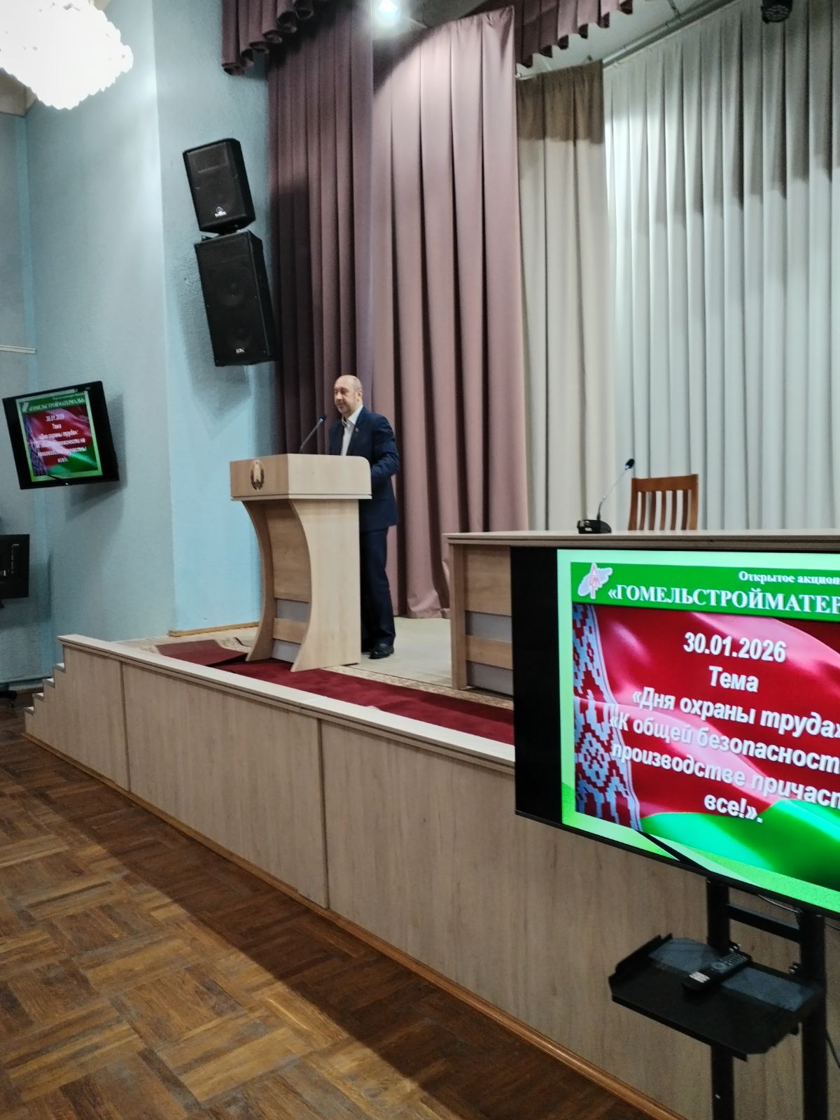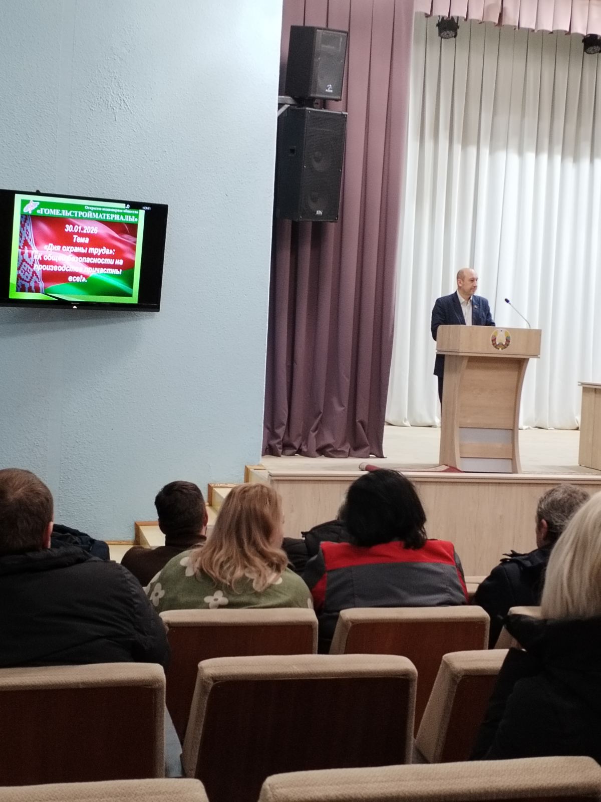 Главный государственный инспектор отдела надзора за соблюдением законодательства об охране труда Гомельского областного управления Департамента Денис Кизюн принял участие в мероприятии «День охраны труда», проводимого в ОАО «Гомельстройматериалы».
