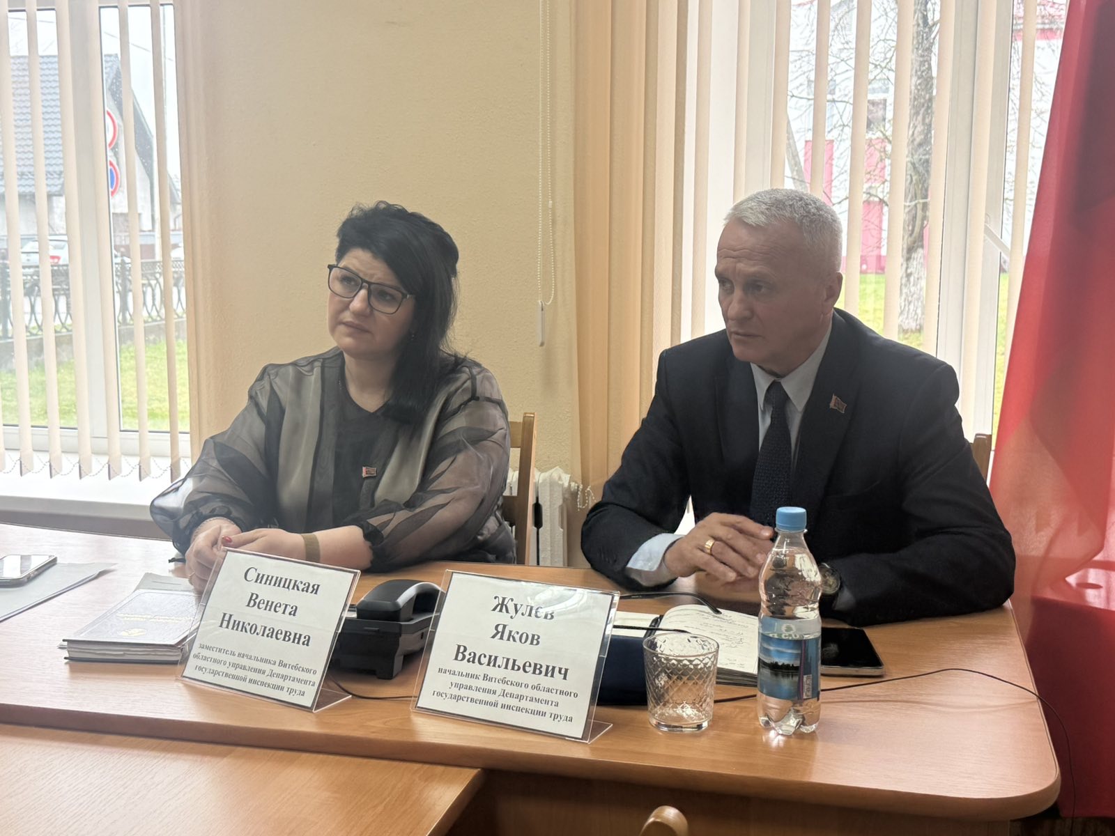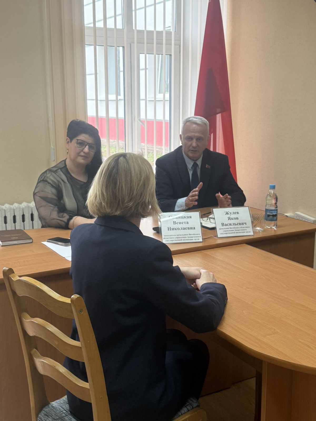 Начальником Витебского областного упрвления Департамента государственной инспекции труда Министерства труда и социальной защиты Республики Беларусь Жулевым Яковом Васильевичем совместно с заместителем начальника Синицкой Венетой Николаевной в Лепельском районном исполнительном комитете проведён «выездной приём» граждан и «прямая линия».