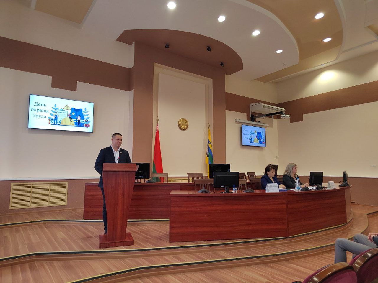 Главный государственный инспектор Жлобинского межрайонного отдела Гомельского областного управления Департамента Александр Крумкачёв принял участие в районном Дне охраны труда в Рогачевском районе, который прошел на базе учреждения здравоохранения «Рогачевская центральная районная больница».