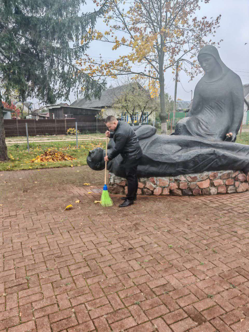 Трудовой коллектив провел работы по наведению порядка на мемориале «Братская могила в г. Жлобине».